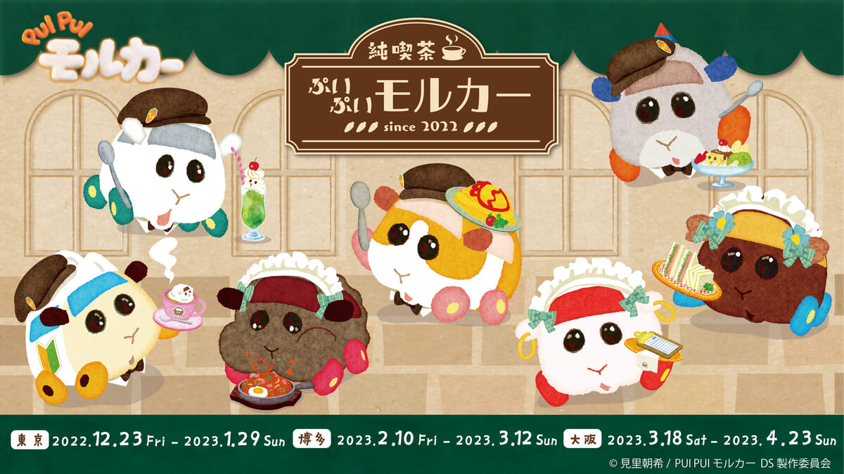 「PUI PUIモルカー×純喫茶」をテーマに、レトロでポップな純喫茶風の制服を身にまとったモルカーたちが登場!