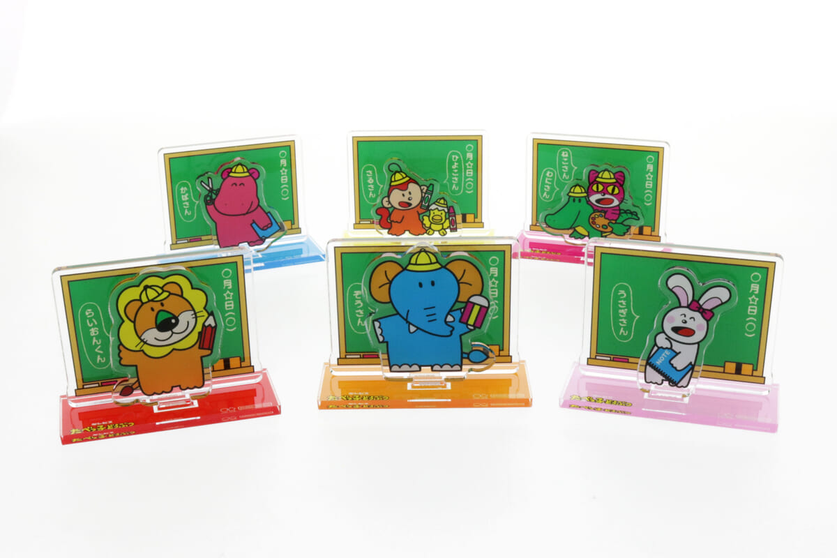 ギンビスの人気お菓子「たべっ子どうぶつ」のキャラクターがデザインされたアクリルミニスタンド。