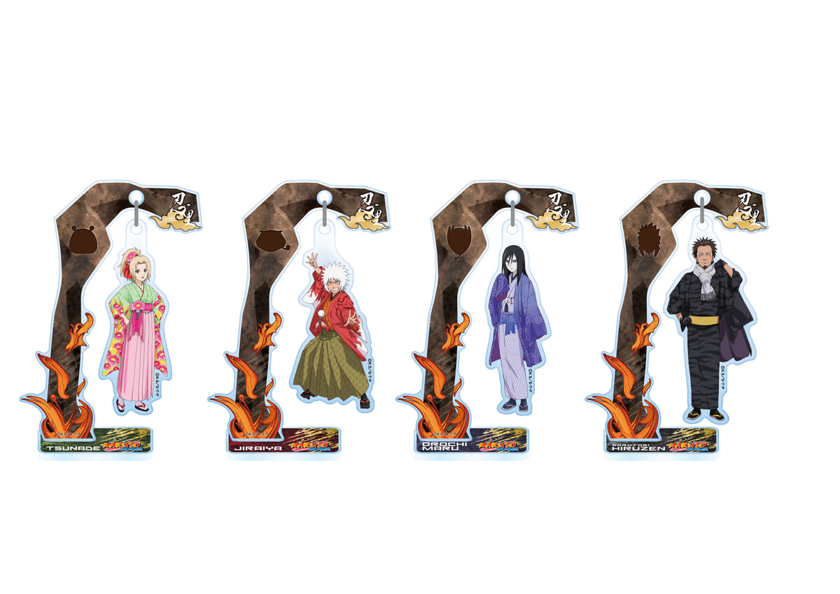 艶やかな衣装を纏った「自来也」「綱手」「大蛇丸」と「猿飛ヒルゼン」のアクリルキーホルダー。
