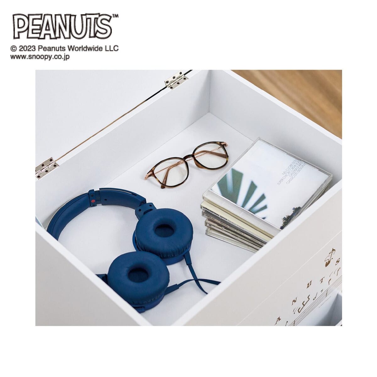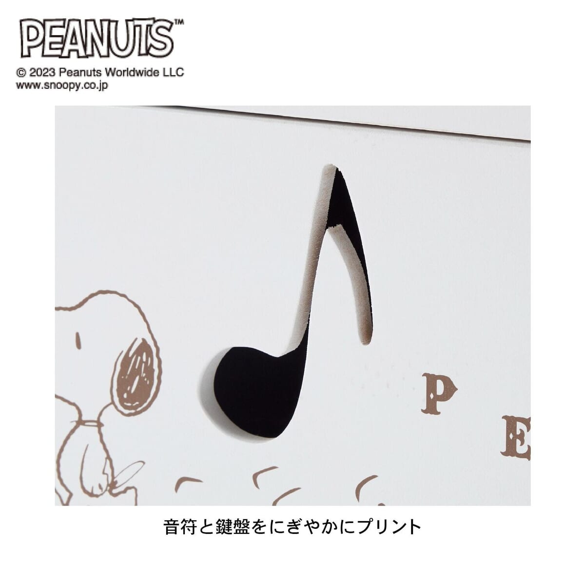 扉に付けられた鍵盤モチーフの収納スペースには、「スヌーピー」の足跡が付いているのもポイントです。