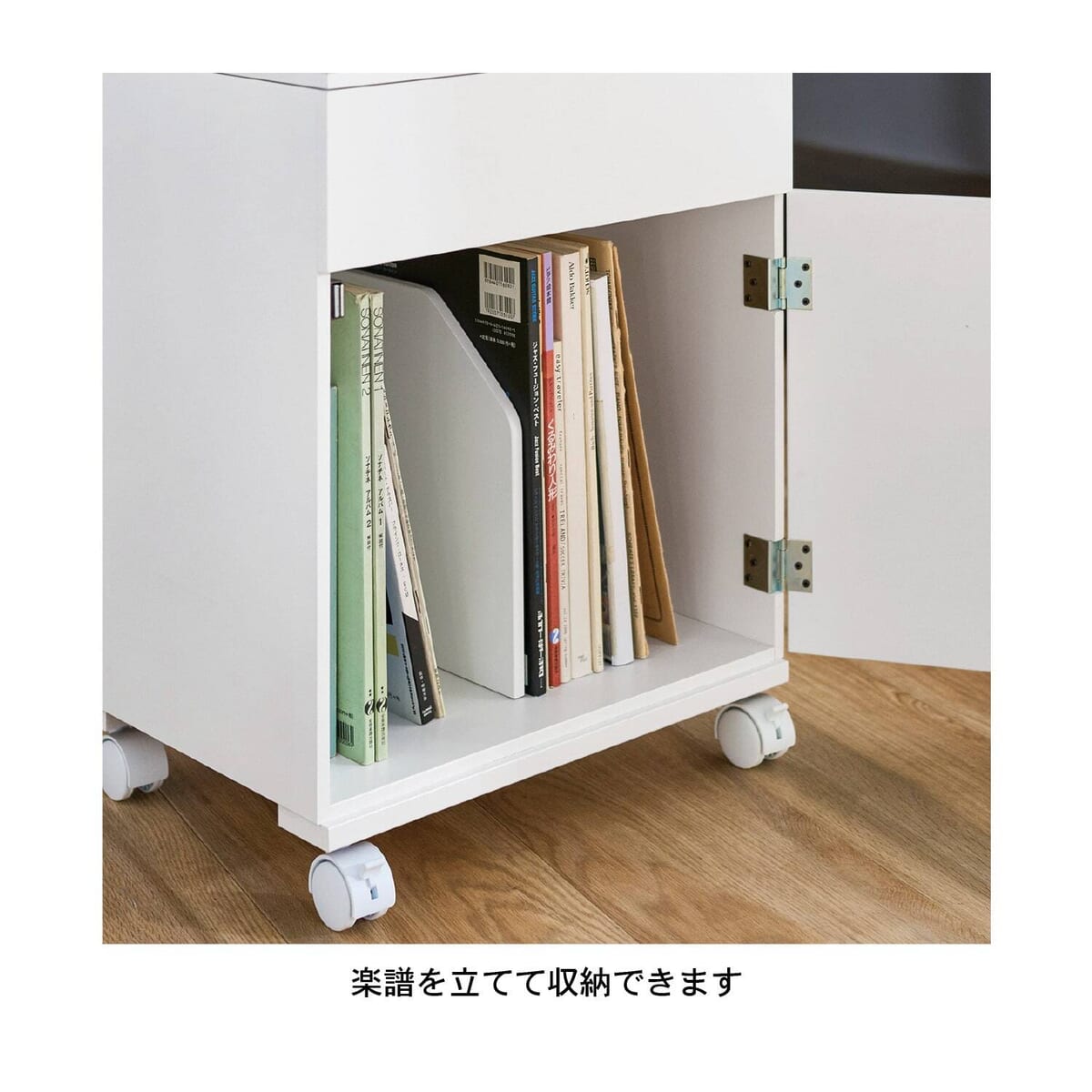 ゴチャつきがちな楽譜や教本などをまとめて収納できる、音符と鍵盤のプリントがにぎやかになワゴンです!