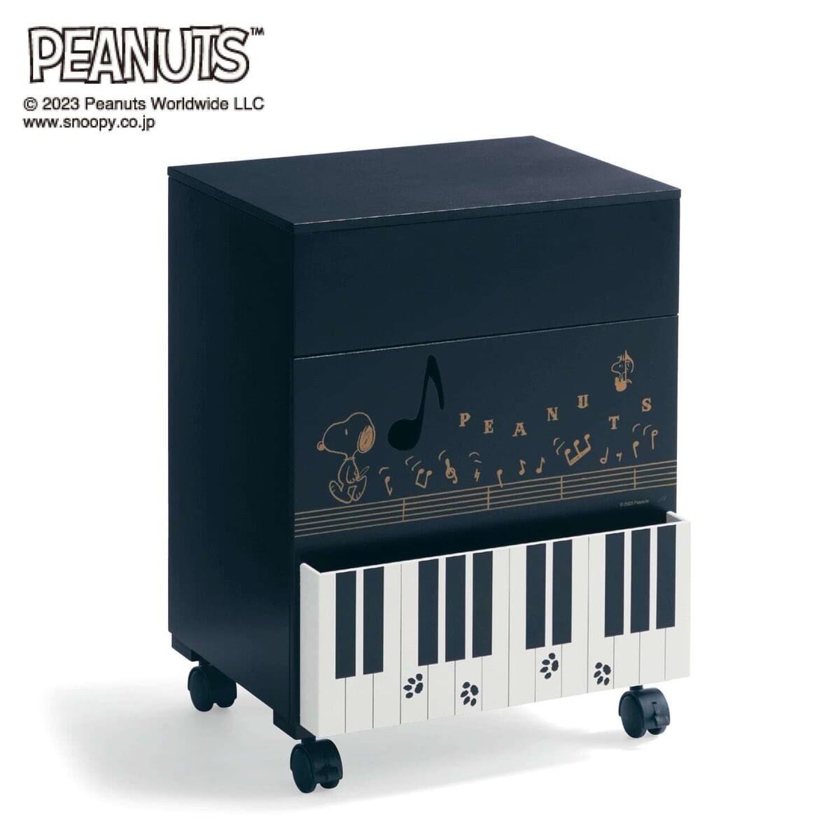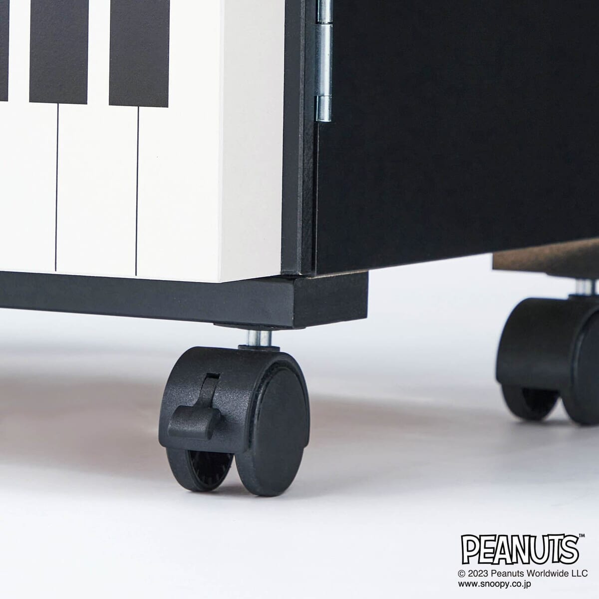 鍵盤や音符モチーフが楽しく、ピアノレッスンの道具をまとめられる「スヌーピー」デザインのキャスター付きワゴン。