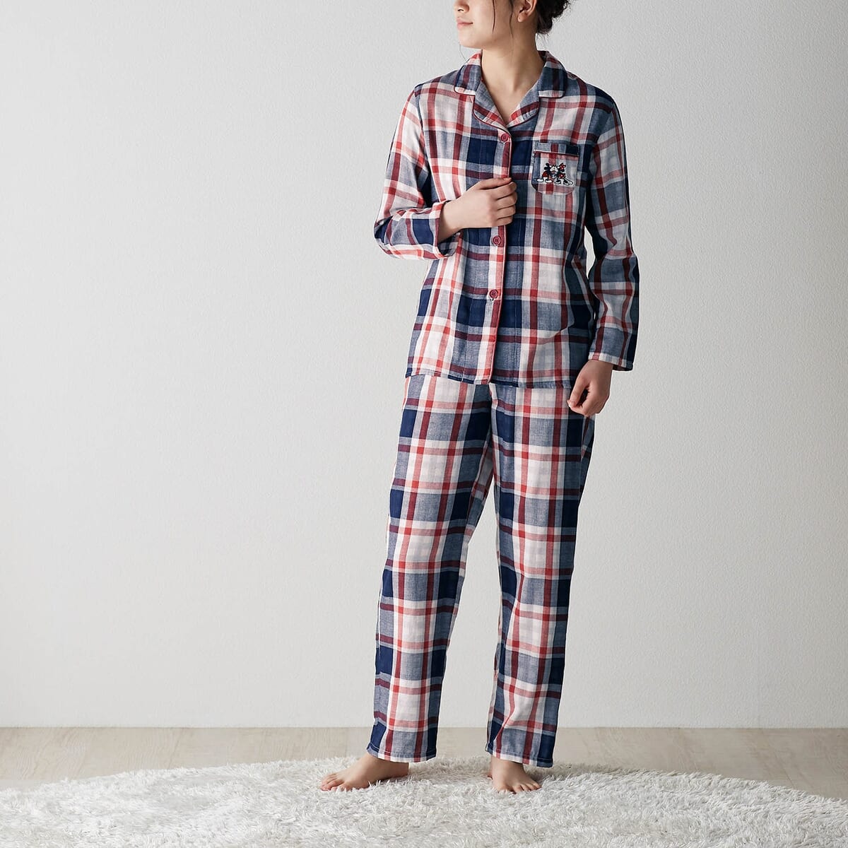 ベルメゾン ディズニー「ミッキーマウス/チップ&デール/くまのプーさん」先染めチェックパジャマダブルガーゼ