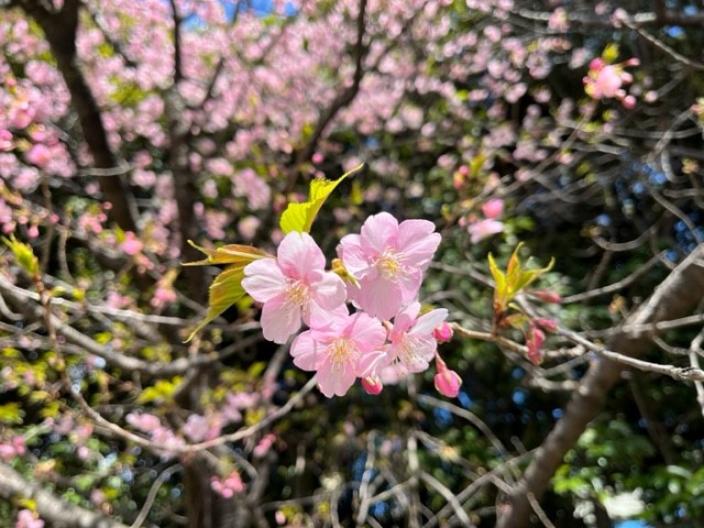 緑とくつろぎの空間「オリーブと噴水の広場」に植えられた「河津桜」
