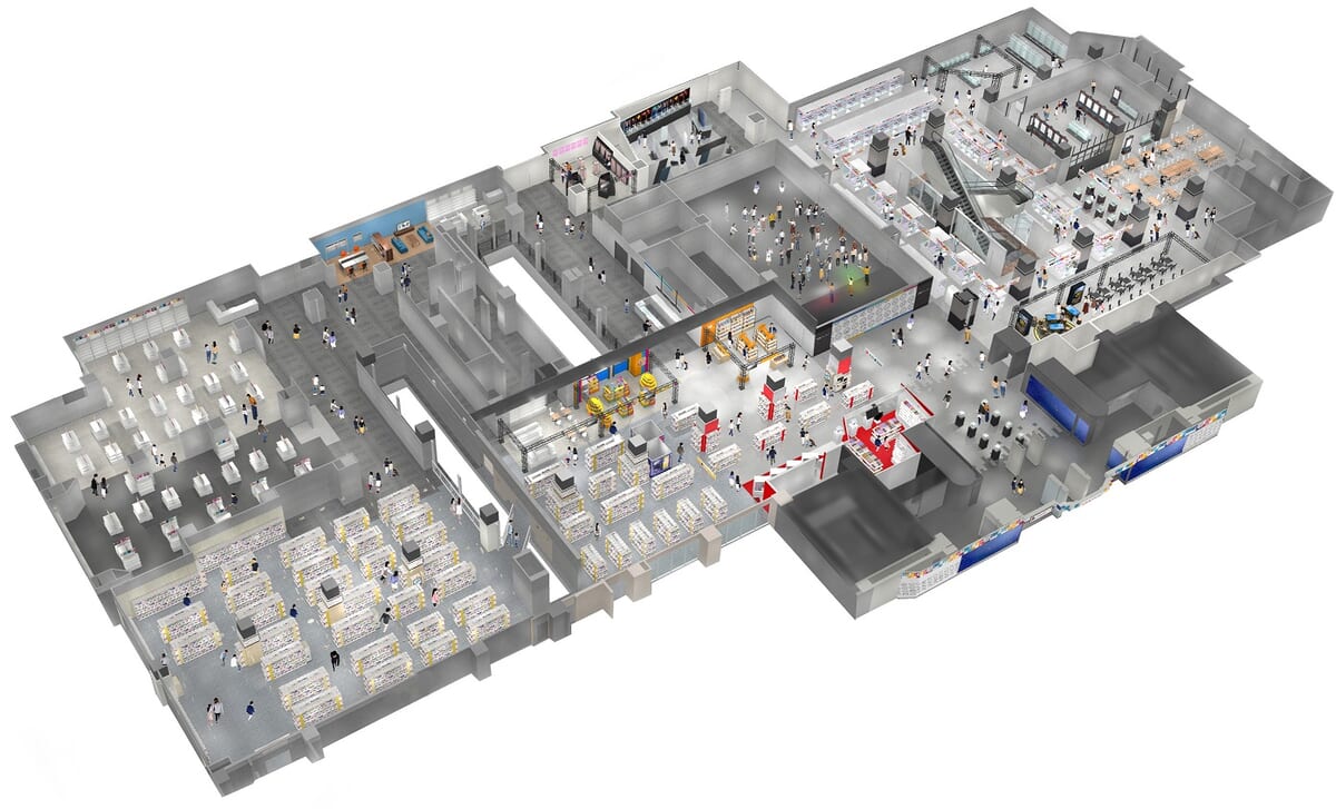 池袋総本店は国内展開中のカプセルトイ専門店の中で、最大級(※)となる3,040面の設置面数を誇る「ガシャポンのデパート」の旗艦店です。