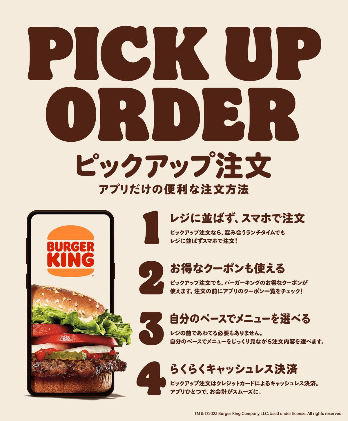 「ピックアップ注文」は、レジに並ばずスマホで注文できる便利な機能。
