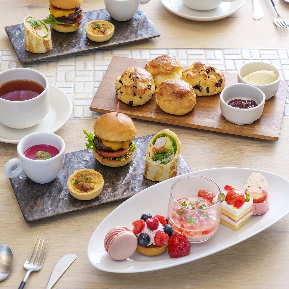 北米の倉庫をイメージしたオールデイダイニングでいただく、ピンクを基調にしたアフターヌーンティーセット。