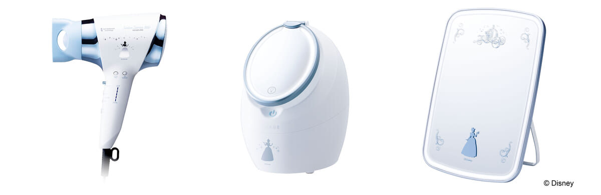 ディズニープリンセス「シンデレラ」がデザインされた「イオンバランスドライヤー」「フェイススチーマー」「LEDミラー」が発売されます☆