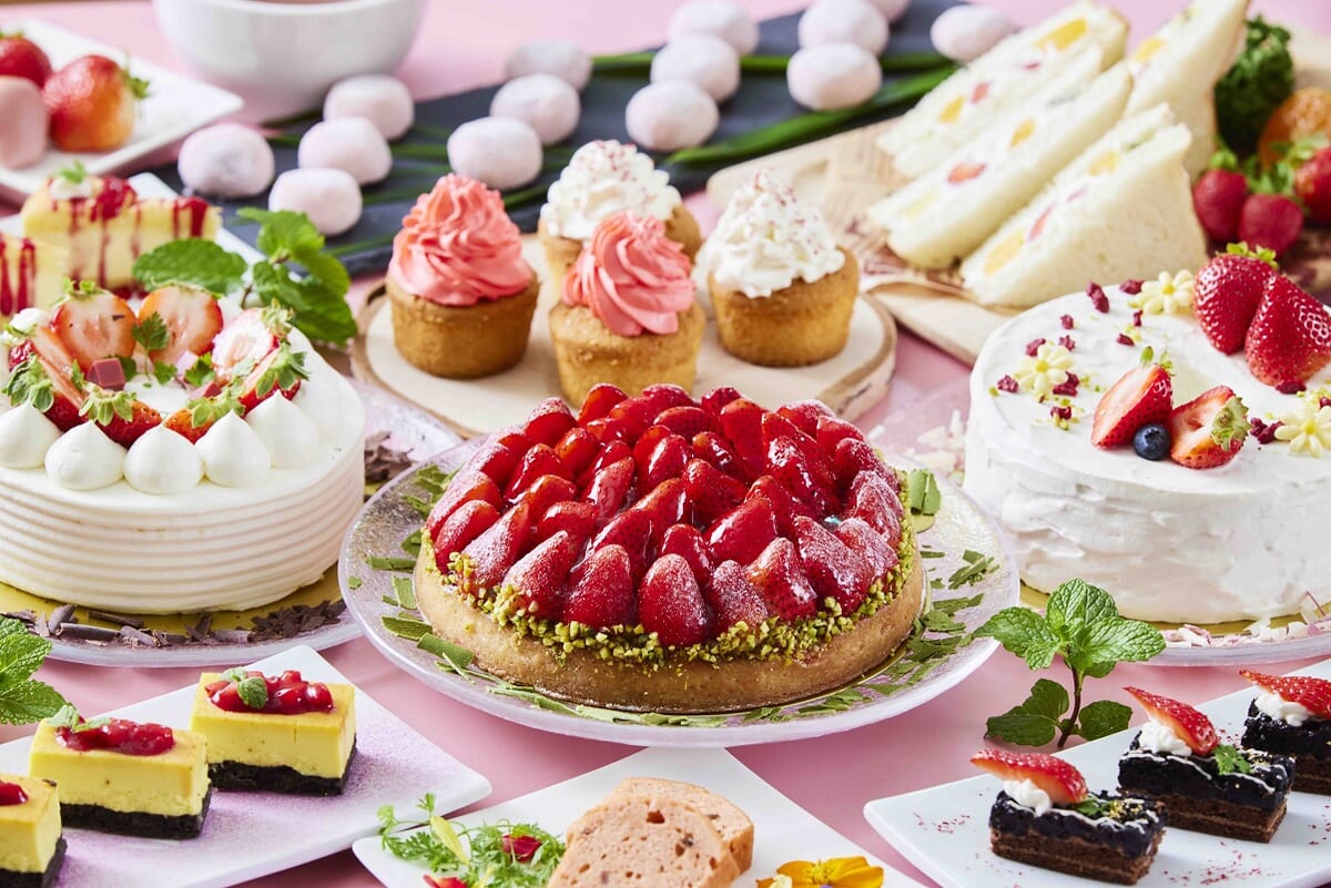 ホテルパティシエ特製の苺のデザートをはじめ、ルビーチョコレートのファウンテンやフルーツサンドも登場。