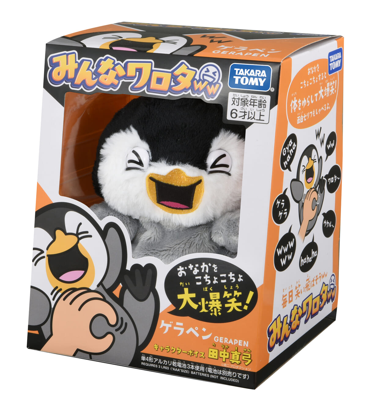 笑い声は、人気声優である 田中真弓さん(ゲラペン・ゲラハム)、 梶裕貴さん(ゲラネコ・ゲラウサ)が担当した、撮りおろし音声です☆