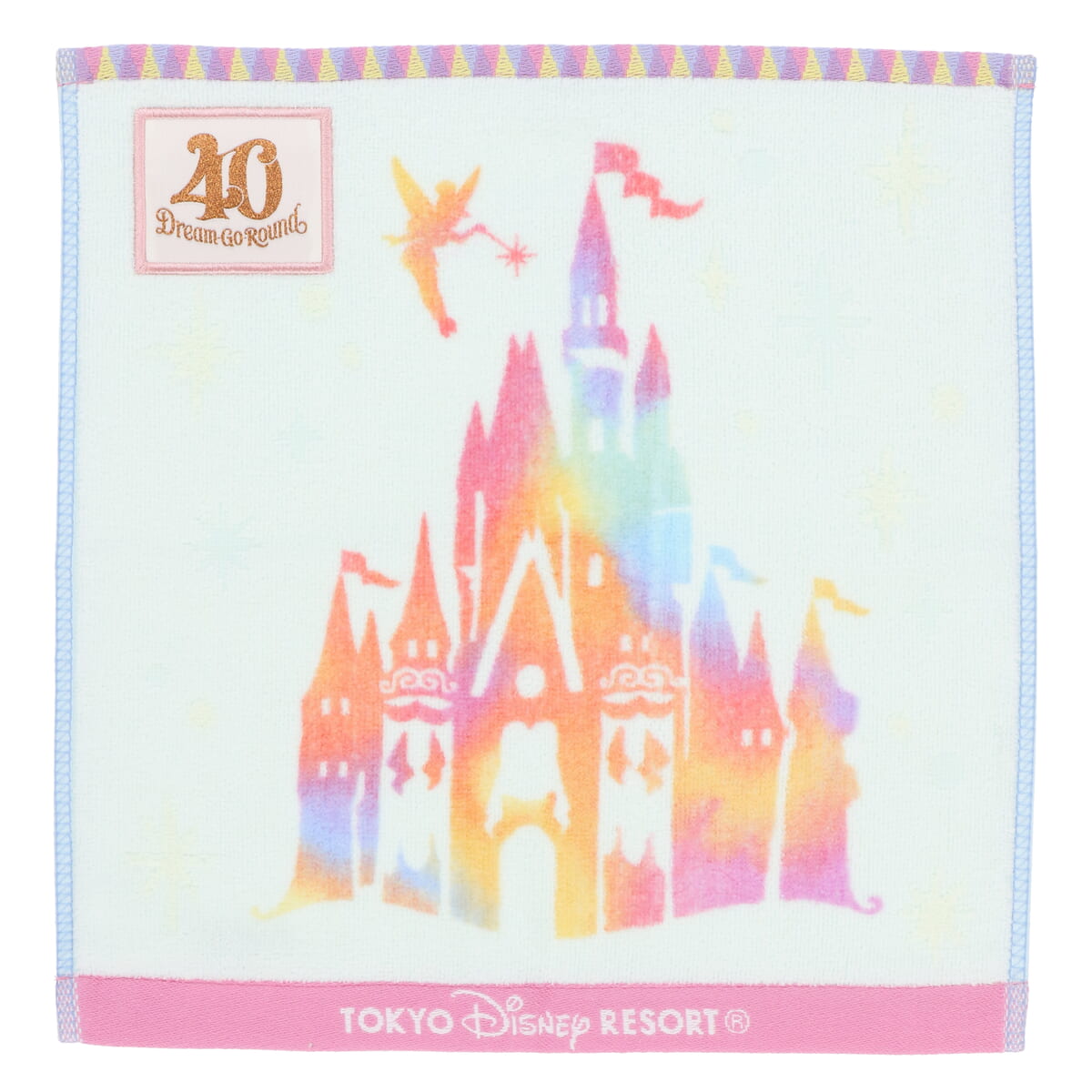祝祭感溢れる華やかなキャッスルとロゴが描かれた肌触りの良いタオル。