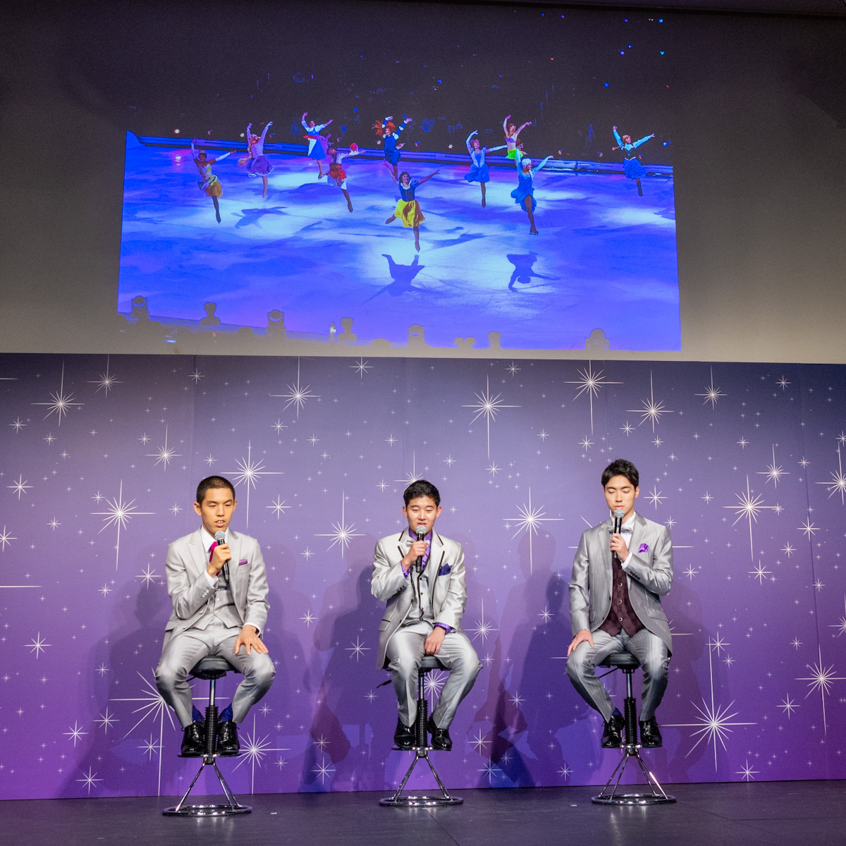 『ディズニー・オン・アイス 100 Years of Wonder』の注目シーンの写真や映像をご覧になった3人。