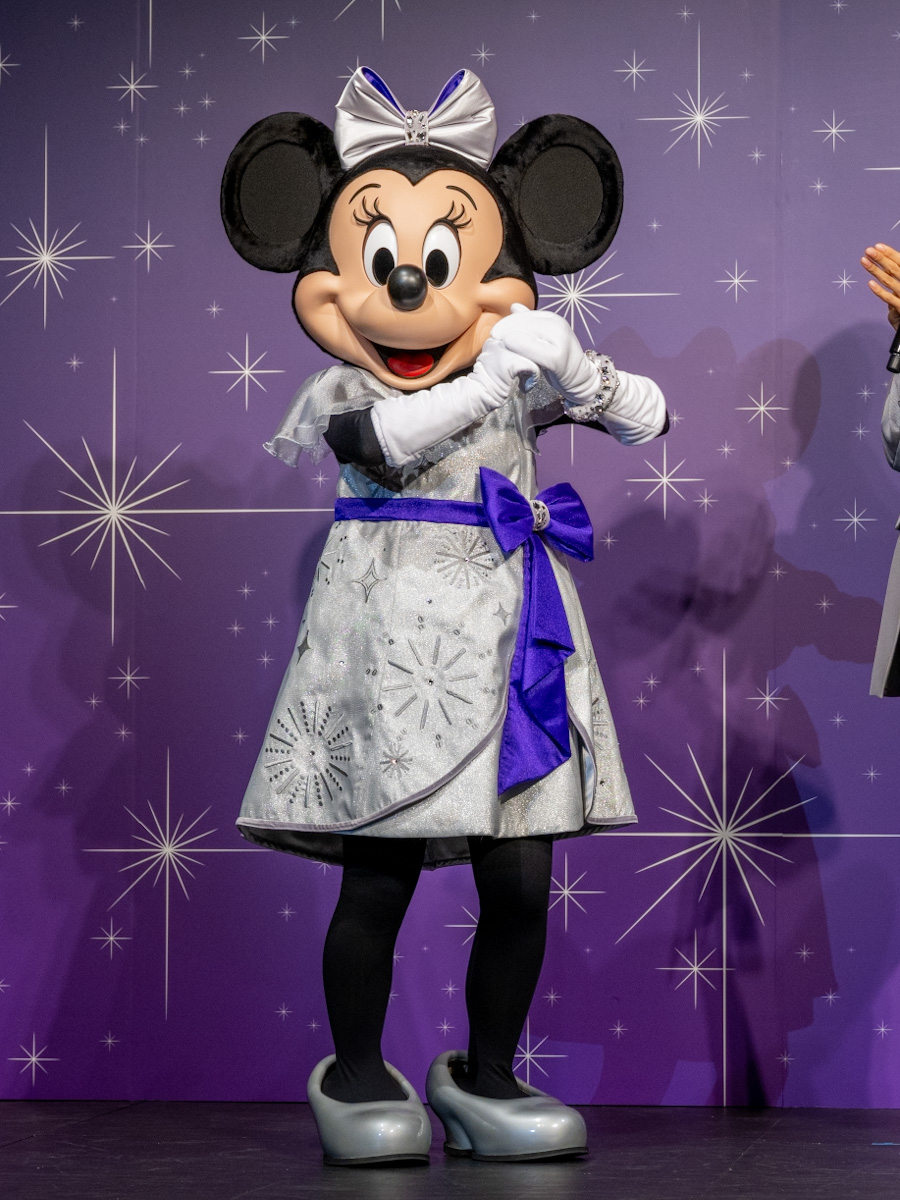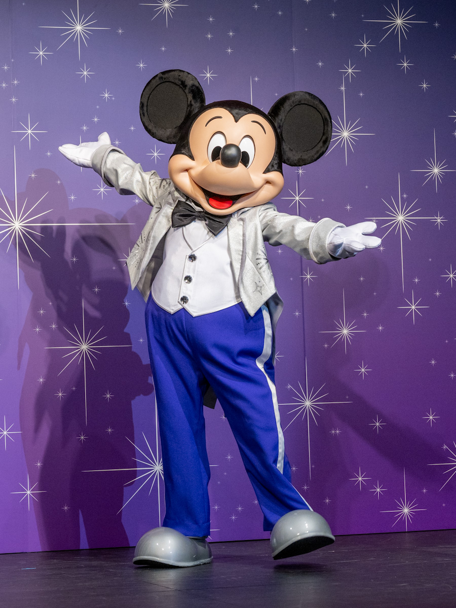 ショーのフィナーレではミッキー、ミニー、ドナルド、グーフィーが“ディズニー100”の特別なプラチナの衣装を身にまとって登場します。
