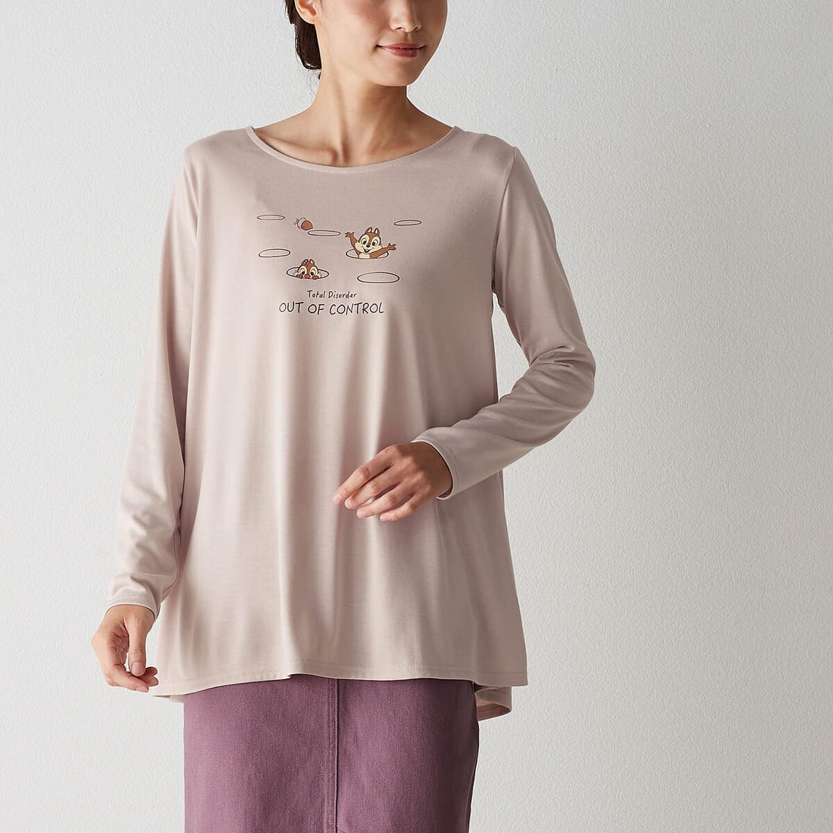 胸元には、穴の中からひょっこりと顔を出す「チップ」と「デール」の姿が。