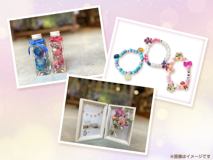 「ハローキティ」と「ディアダニエル」をイメージしたハーバリウムや「マイメロディ」や「クロミ」をイメージしたフォトフレーム、「シナモロール」や「ウィッシュミーメル」をイメージしたイニシャル入りブレスレットの制作が予定されています。
