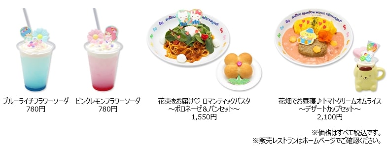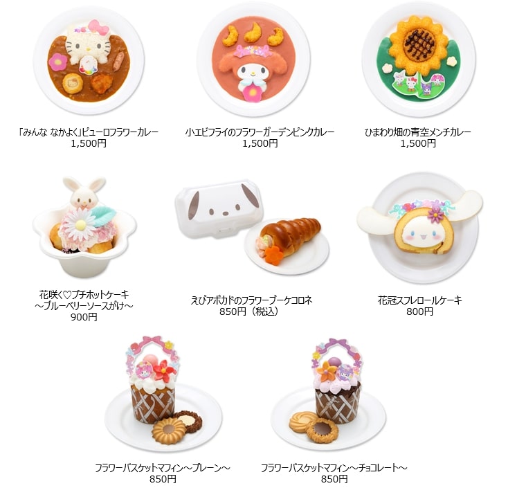 他にも小腹が空いたときにぴったりな「花咲く♡プチホットケーキ~ブルーベリーソースがけ~」や「花冠スフレロールケーキ」など、キャラクターとお花がデザインされたメニューをお楽しみいただけます。