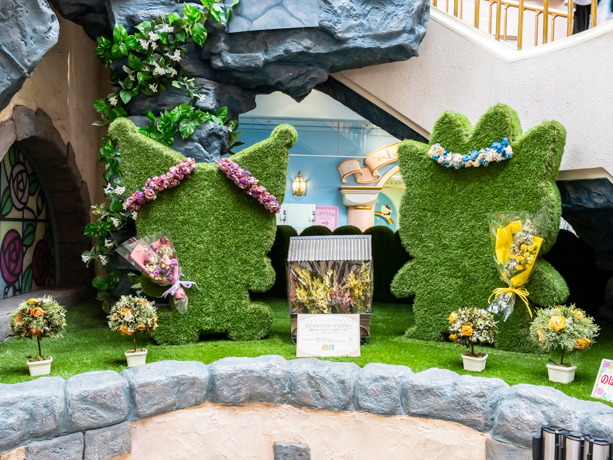 さらに、フォトスポットをはじめとし、館内にもキャラクターをイメージしたお花が隠れていたり、エシカルフラワーを使って装飾したキャラクタートピアリーが登場したりとカラフルなお花でいっぱいに。
