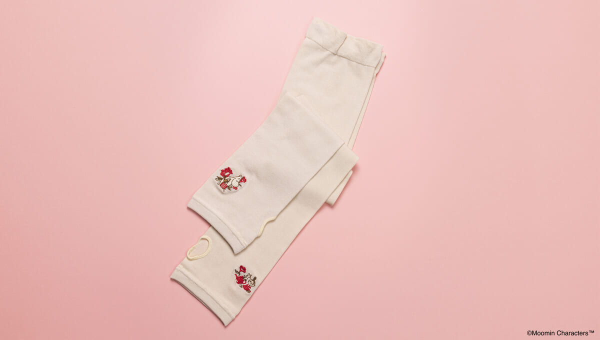 「ムーミンママ」と「リトルミイ」の刺繍入りアームカバー。