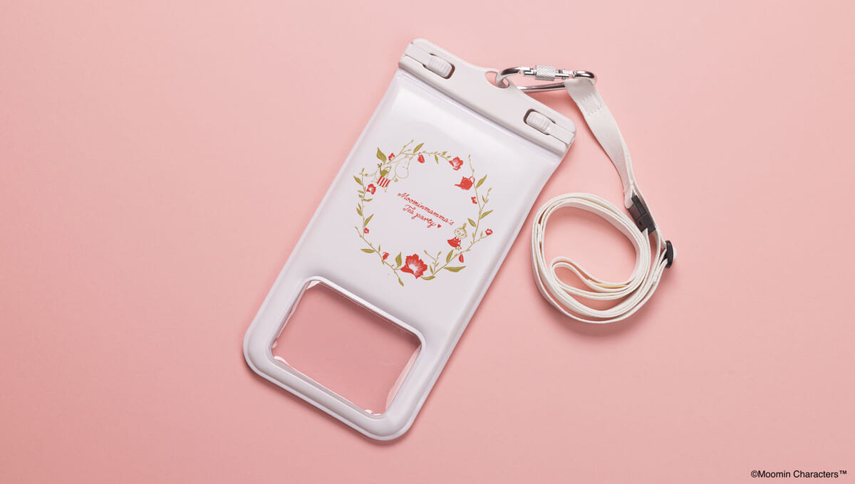 赤色のお花が華やかなデザインがあしらわれた「DIVAID 防水ケースショルダーストラップ」