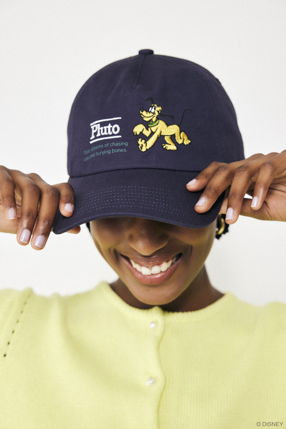 アクセサリーも展開し、アクティブなコーデに取り入れたいキャップには、元気な「プルート」の姿が。