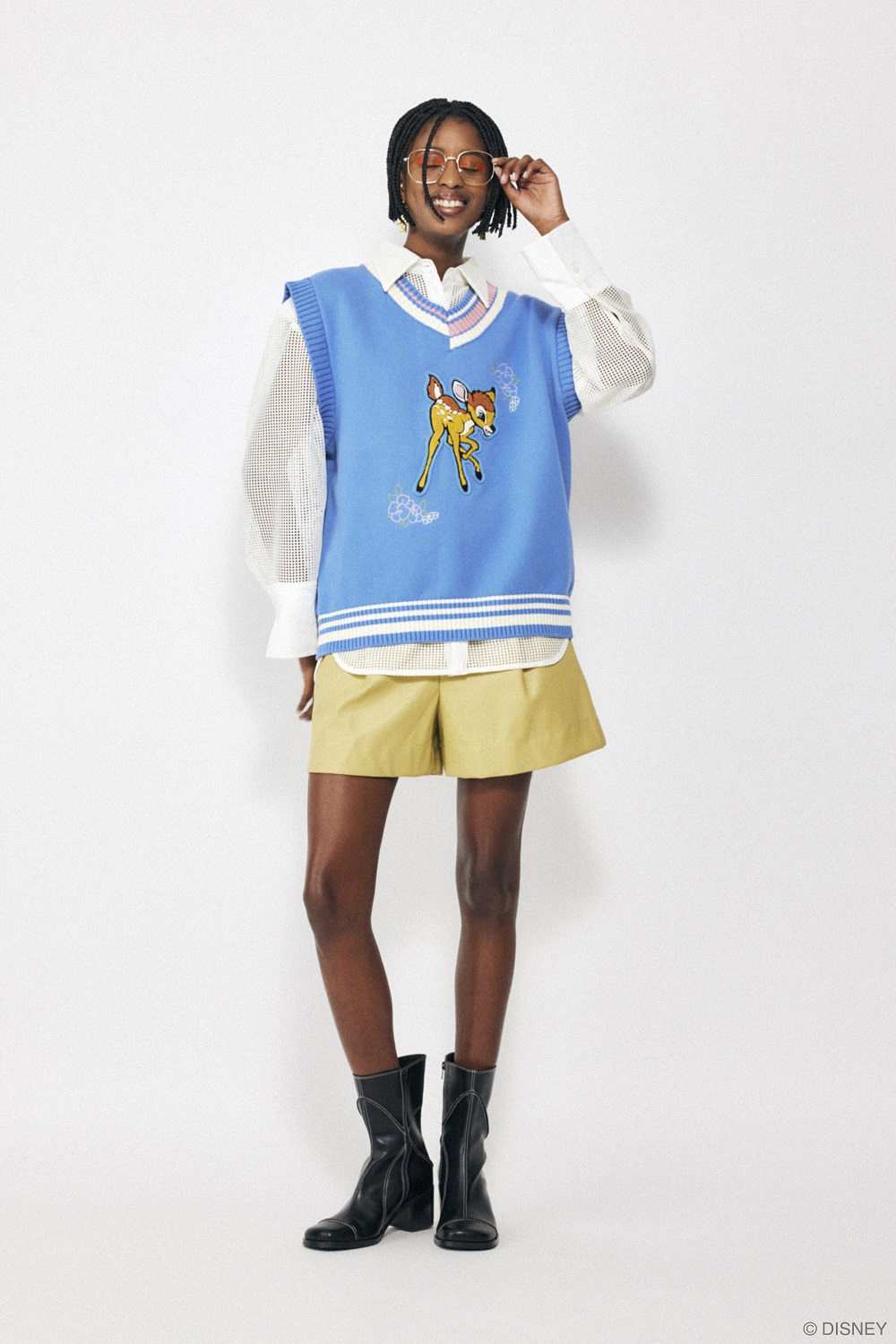 「バンビ」の愛らしい姿をあしらったニットベストや