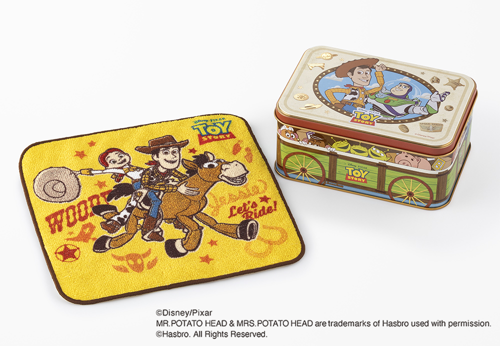 「トイ・ストーリー/メープルショコラサンド」スペシャル缶 14枚入にミニタオルがついてくる「ミニタオルセット」