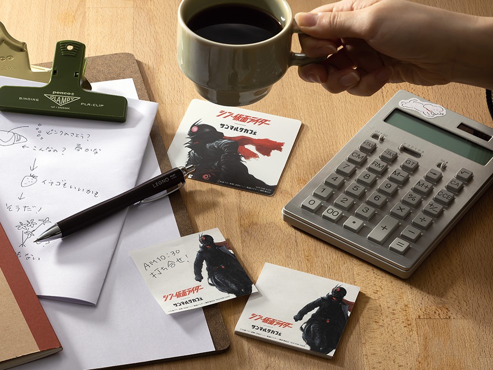 映画公開を記念した、サンマルクカフェ×映画『シン・仮面ライダー』のオリジナルデザインのコースターと付箋が登場。