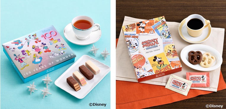 「Disney100」デザインのミルフィーユと「ミッキーマウス」デザインのプレッツェル型クッキーが販売されます。