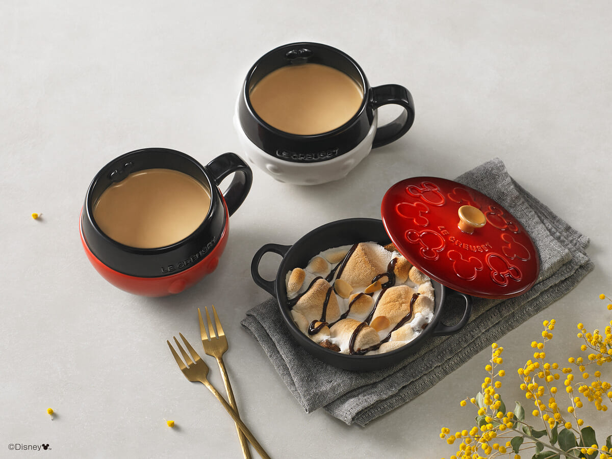 ほかにも、たっぷり入ってスープマグとしても活躍するペアマグなど、「ミッキーマウス」のキーカラーで彩られた大人かわいいキッチンアイテムが揃います。