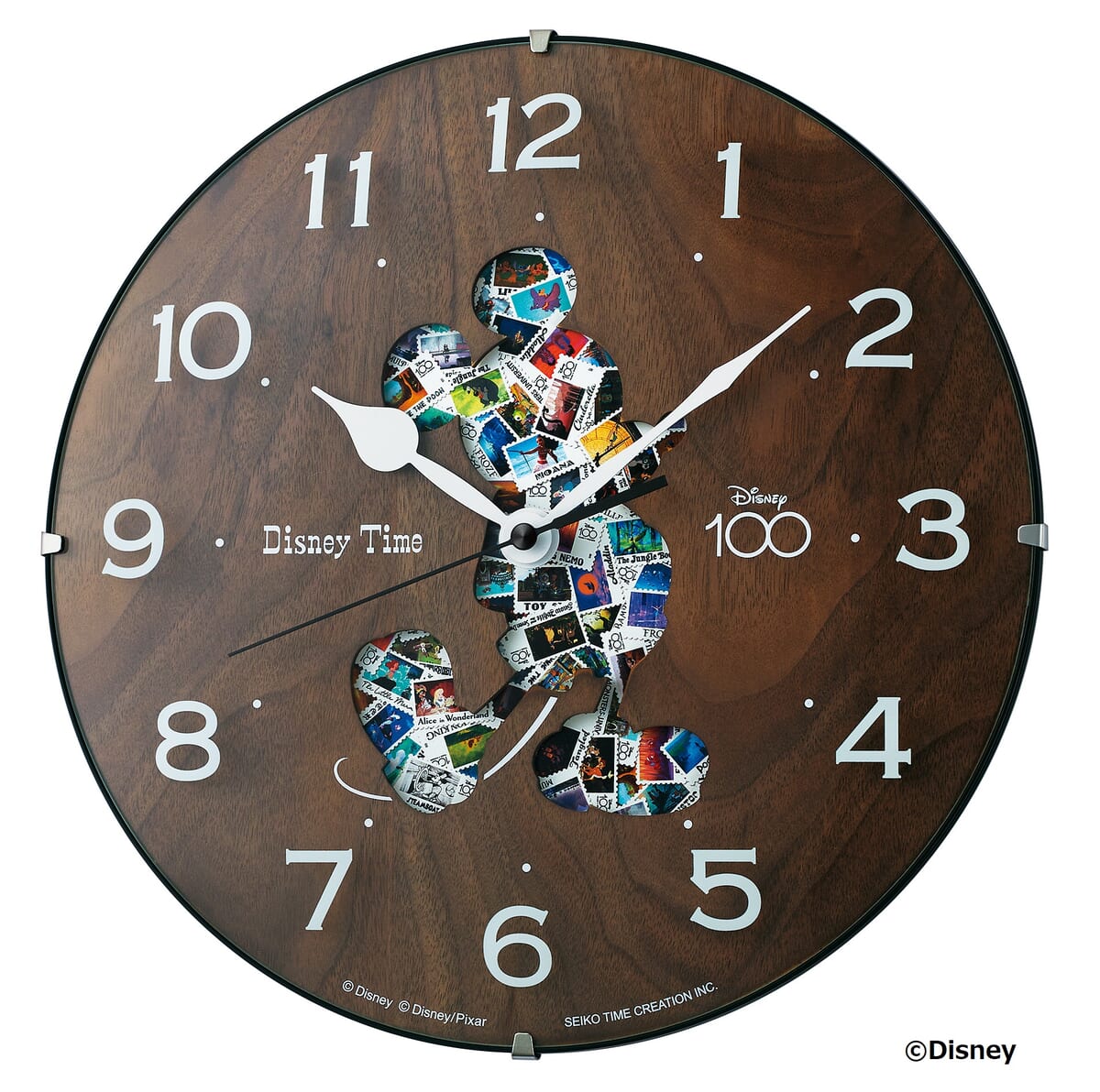 「ミッキーマウス」のシルエット部分には、映画のワンシーンを切り取った100周年限定の切手アートがちりばめられています。
