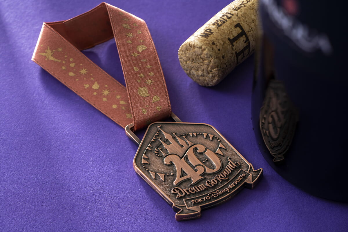 メダルにはシンデレラ城、ガーランドと共に40周年のロゴが刻印されています。