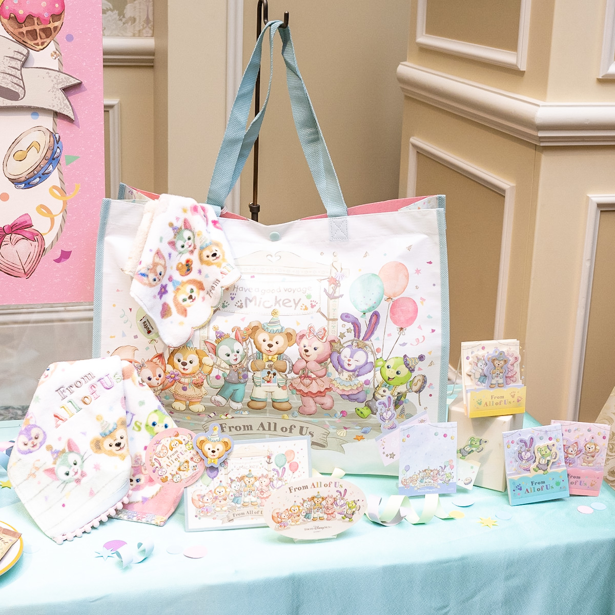 “ダッフィー&フレンズのフロム・オール・オブ・アス”のグッズ第一弾として、パーティーのためにおめかしをしたダッフィー&フレンズや、それぞれが持ち寄ったミッキーマウスへのプレゼントなどがデザインされたグッズを販売。