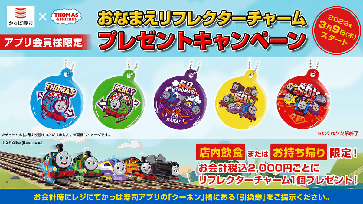 おなまえリフレクターチャームがもらえる!かっぱ寿司×『きかんしゃトーマス』プレゼントキャンペーン