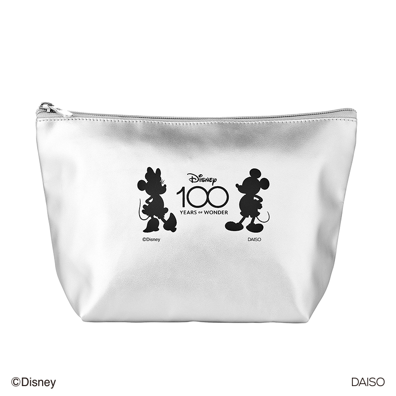 化粧品などを入れておくのに活躍する「Disney100」デザインのポーチ。