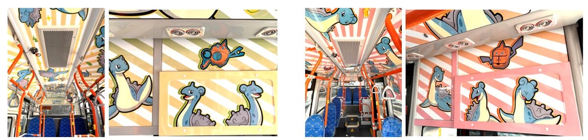 外装はもちろん、内装までラプラス一色に染まったかわいらしいデザインのラッピングバスを紹介していきます☆