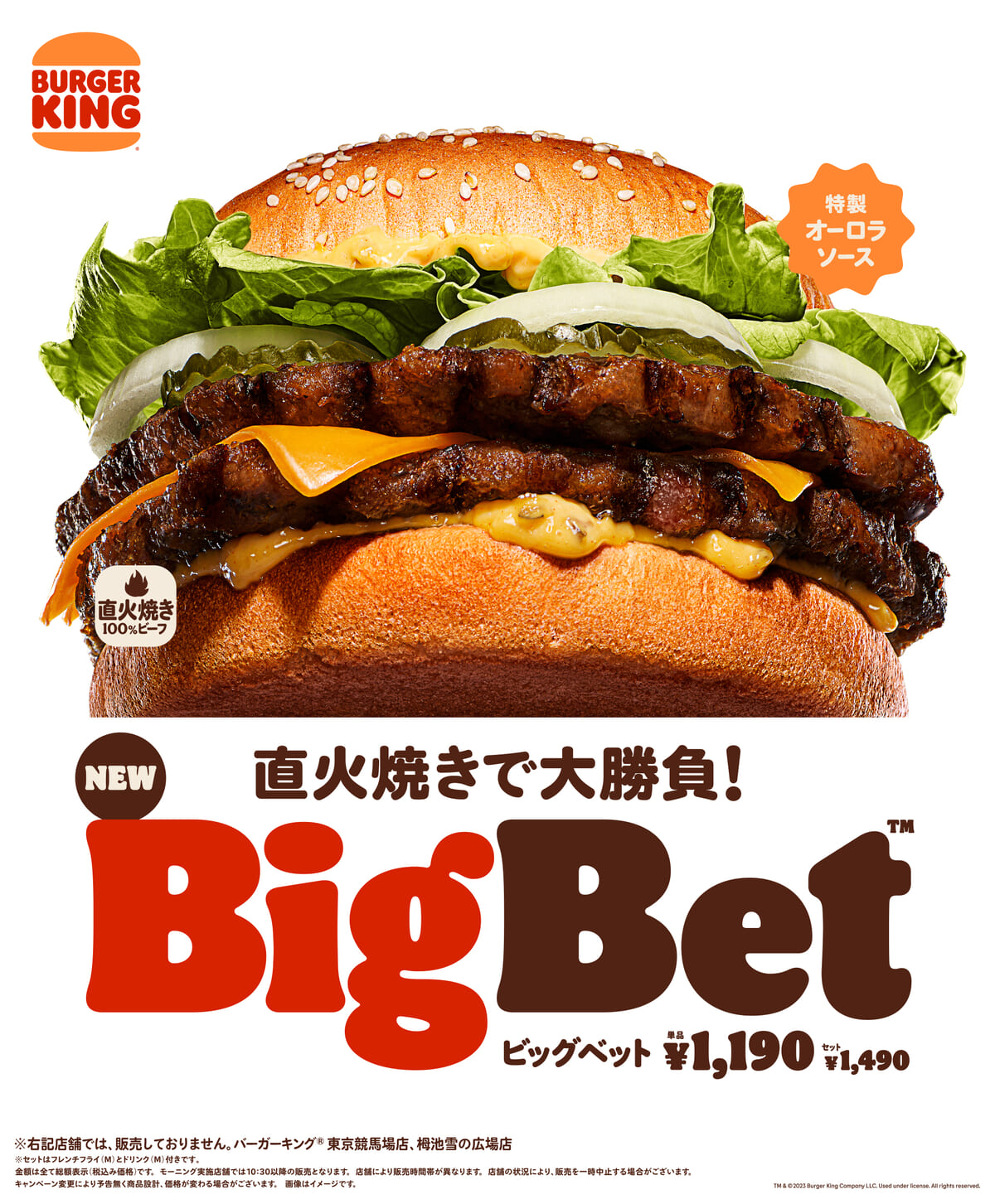 バーガーキング自慢の直火焼きの100%ビーフパティと相性抜群の新開発「特製オーロラソース」を使用した、社運をかけて大勝負する新メニュー「BigBet (ビッグベット)」が新たに発売されます!