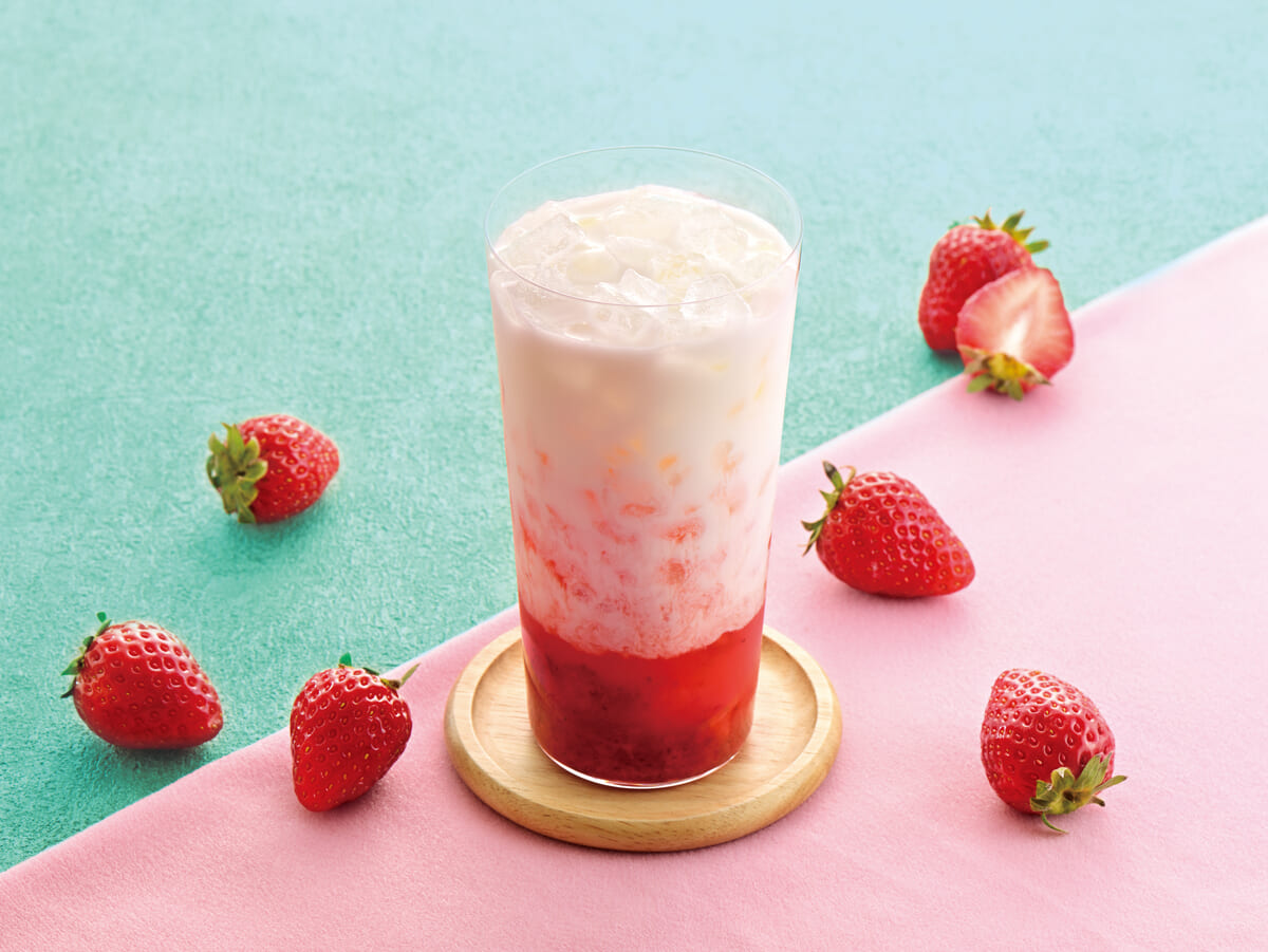 苺のつぶつぶ食感が楽しい苺の果肉入りのソースに、北海道牛乳とさっぱりとした味わいのブルガリアヨーグルトのラッシーをあわせたアイスドリンク。