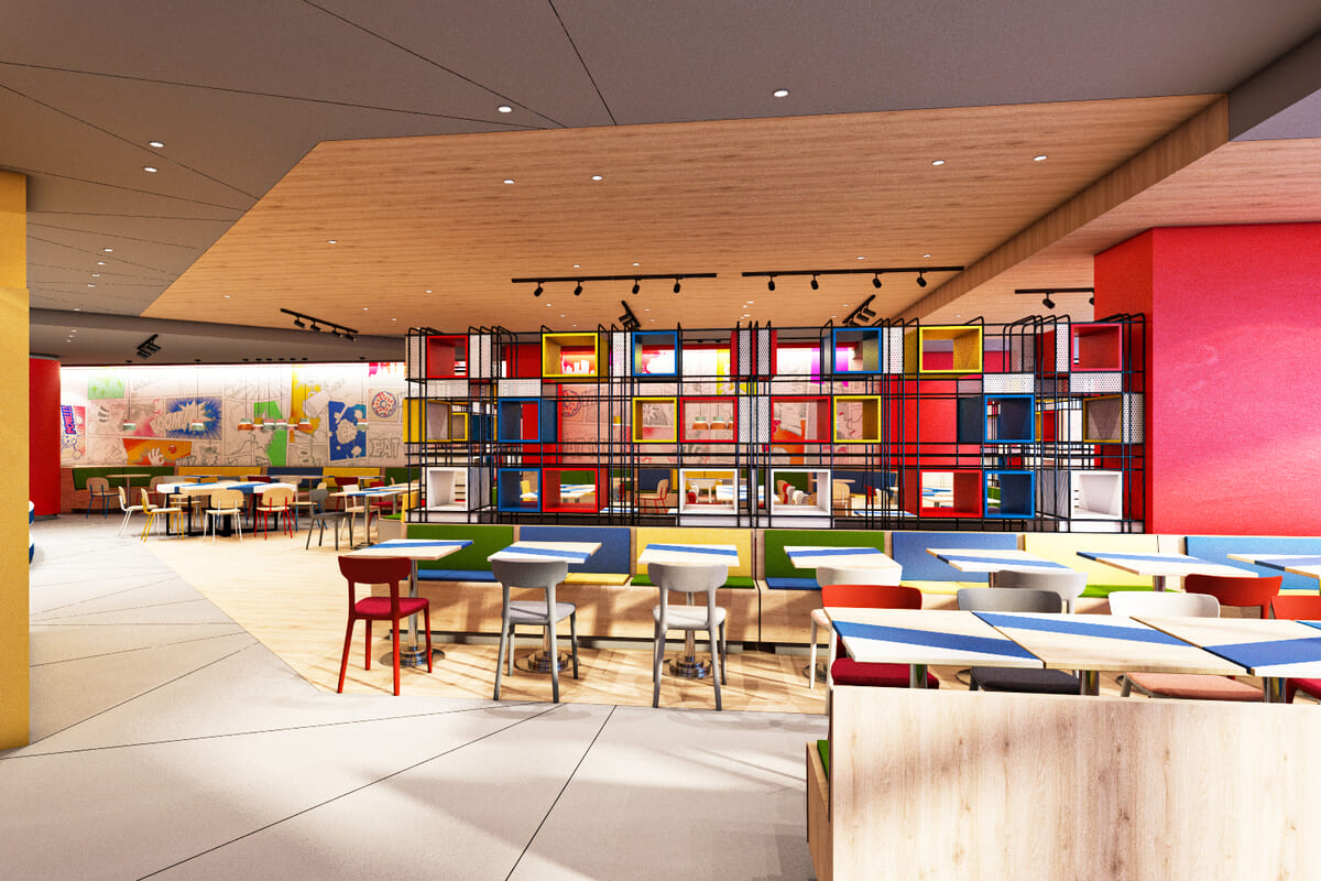 ストリートアート、ストリートフード、コミックなどのイメージをカラフルなグラフィックと空間全体にさまざまなマテリアルパレットなどを用いて組み合わせたゾーンが作り出されます。