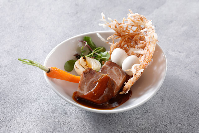 4月29日から5月25日まで実施の第2弾では、ジューシーなうま味引き立つ薩摩白美豚を使用した「白美豚のロティ トリュフ風味のマデラソース 巣ごもり風」、