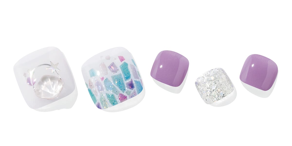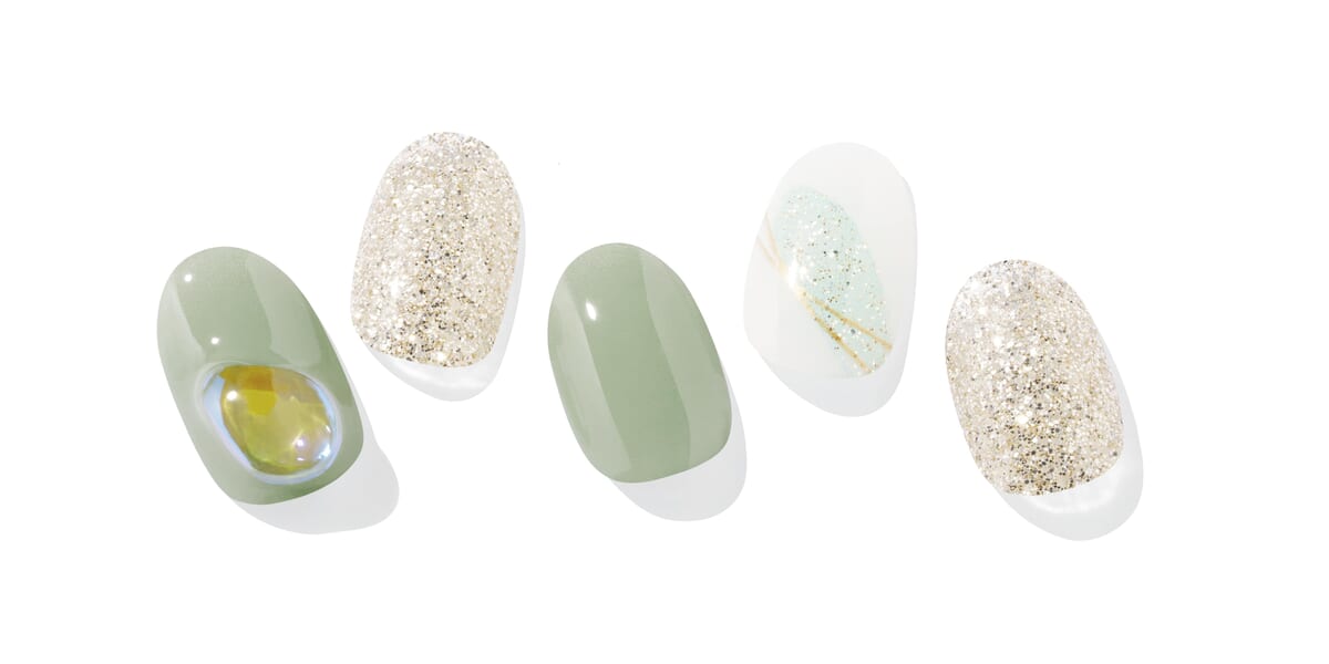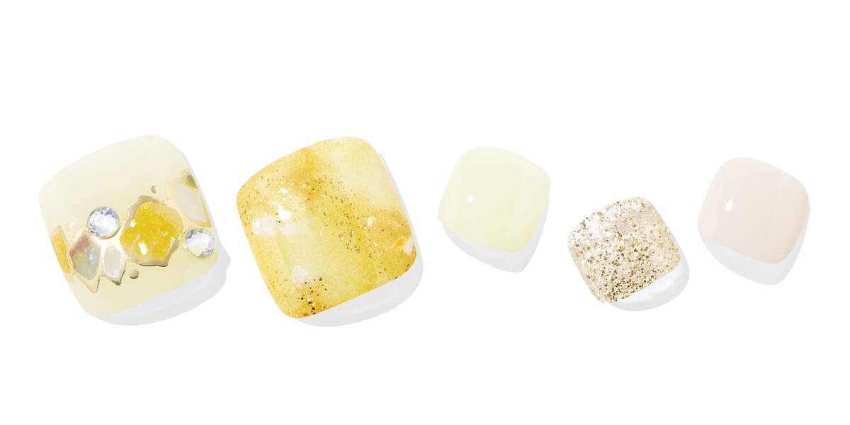 金色の箔、マーブル、グリッターなど、さまざまな要素が調和を生み出し、華やかな魅力となって足もとを輝かせます。
