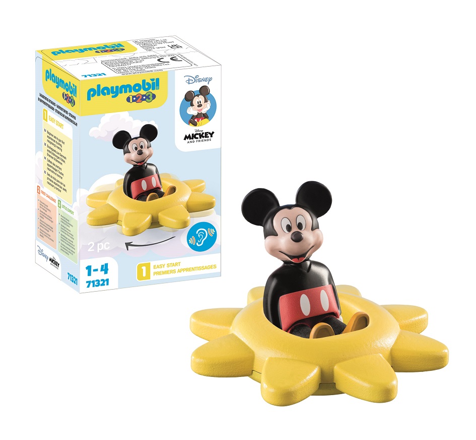 「ミッキーマウス」のフィギュアと、ガラガラと音を立てて回転する”たいよう”がセットになった「ミッキーとガラガラのたいよう」