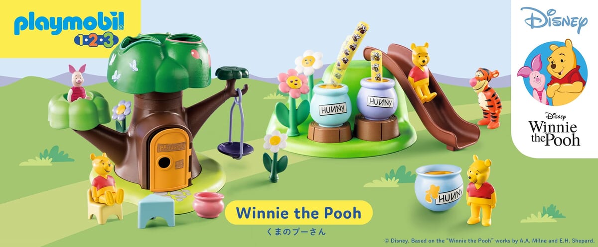 「くまのプーさん」が大好きなはちみつや、ハニーポット、ツリーハウスで知育遊びを楽しめるラインナップになっています。