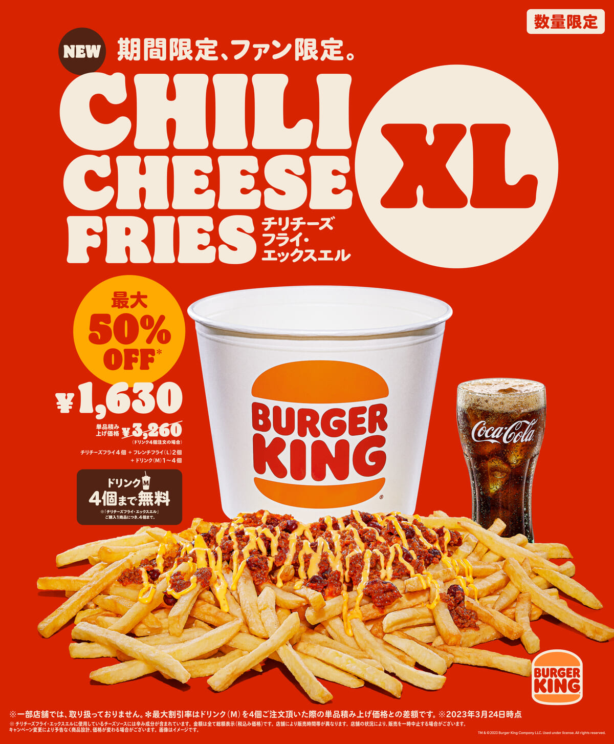 ドリンク付きで最大50%オフ!バーガーキング「チリチーズフライ・エックスエル」