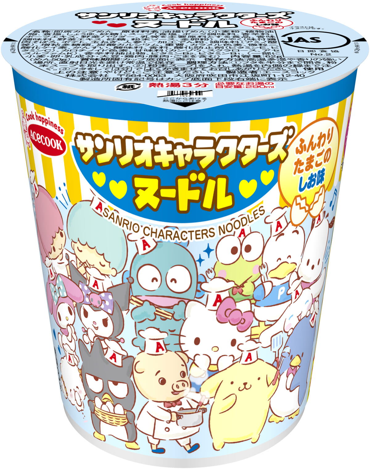 エースコック「サンリオキャラクターズヌードル」ふんわりたまごのしょうゆ味/しお味