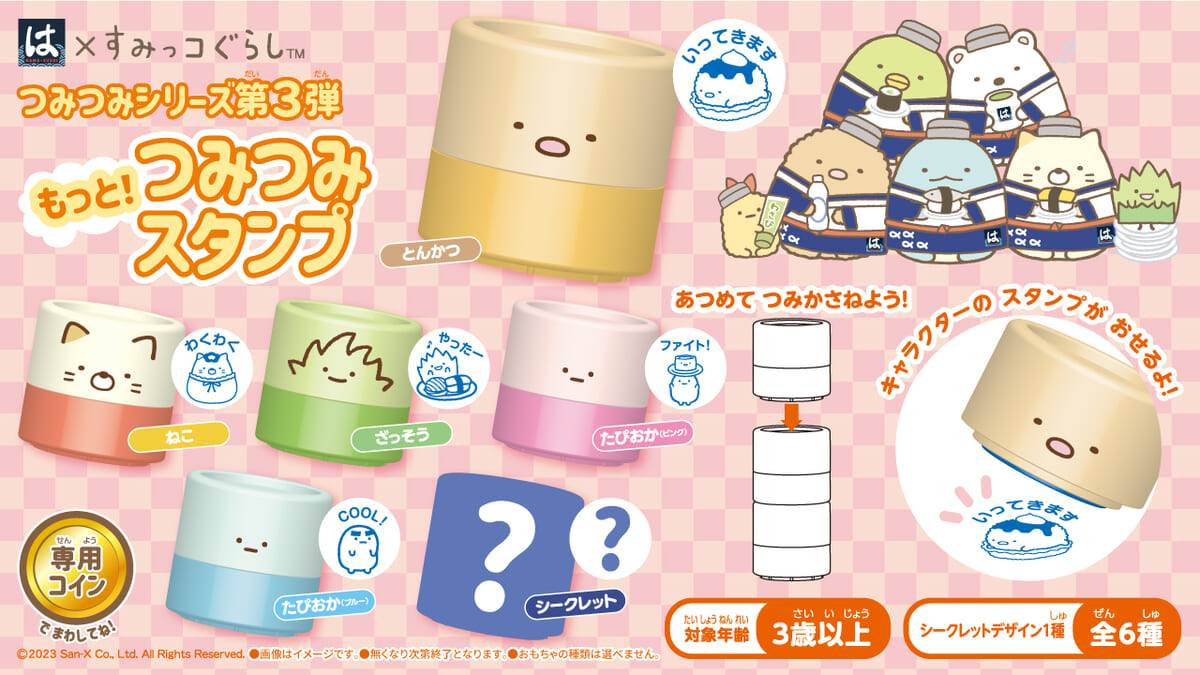 重ねて飾ることができるつみつみシリーズ第3弾として、「すみっコ」たちがデザインされた「もっと!つみつみスタンプ」を展開。