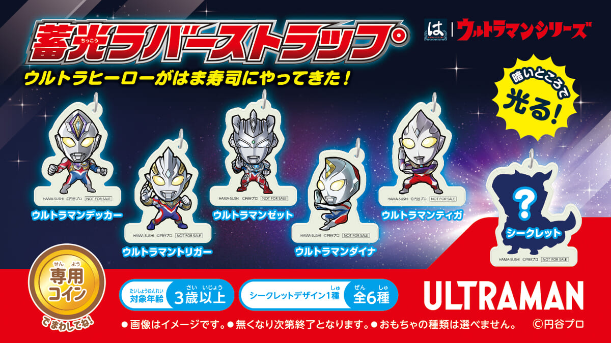 「ウルトラマン」シリーズが、暗いところで光る「蓄光(ちっこう)ラバーストラップ」として「はまっこセット」に初登場!
