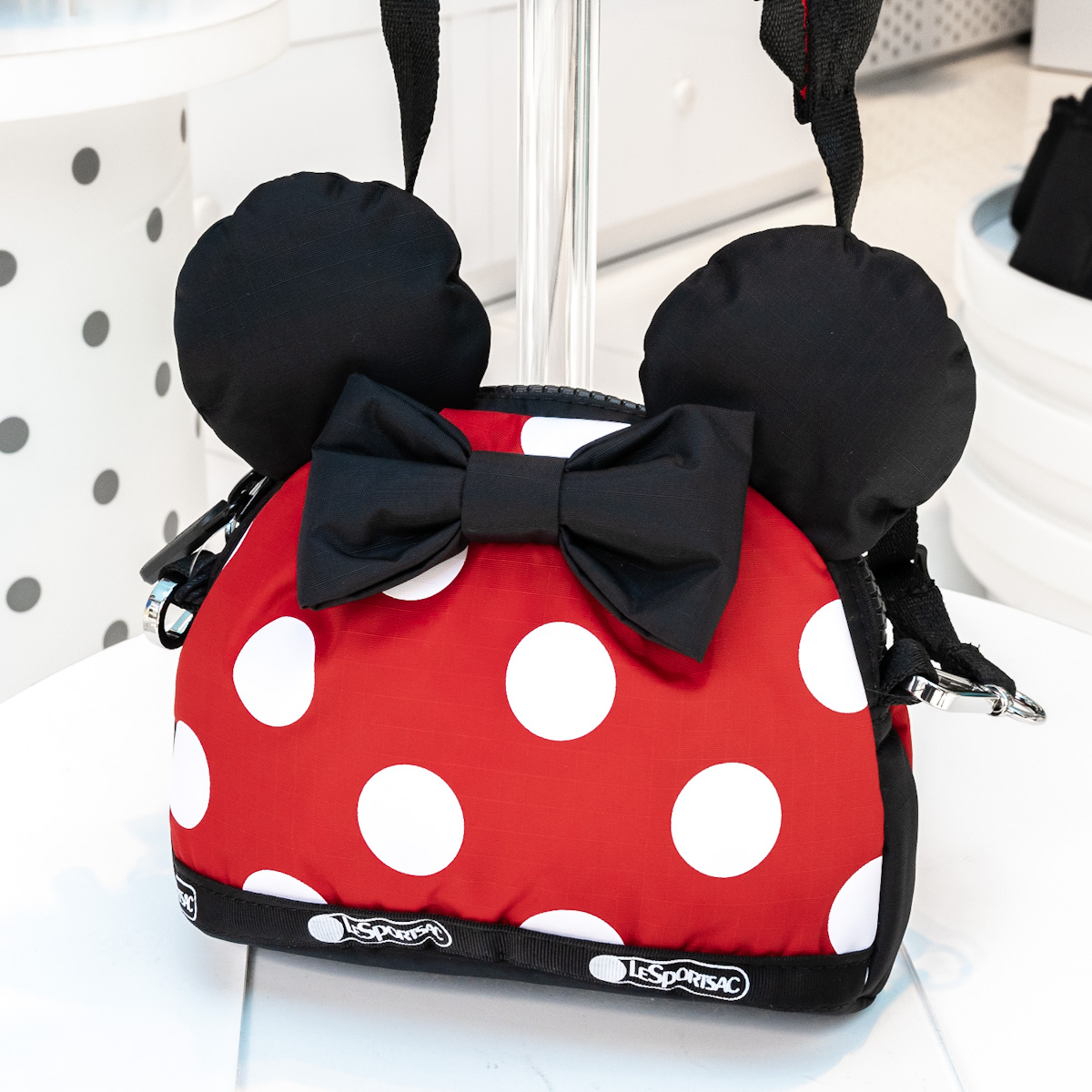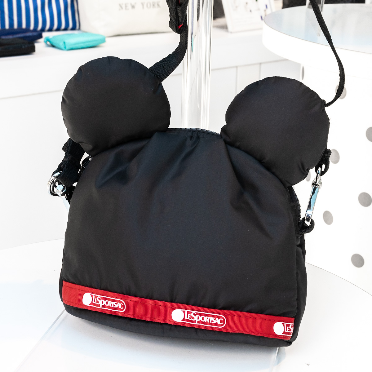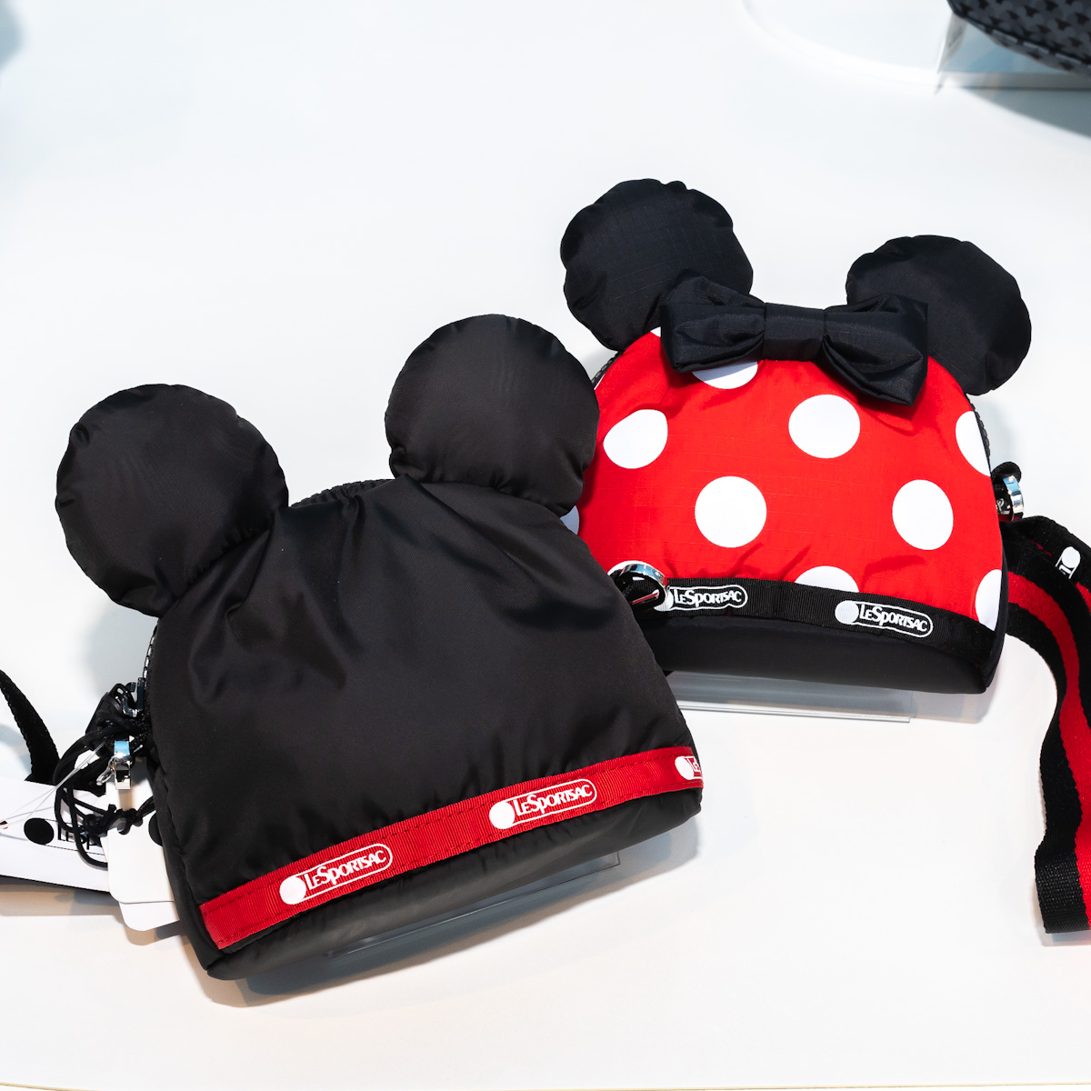 耳のモチーフがかわいい「ミッキーマウス」と「ミニーマウス」をかたどった、クロスボディバッグ。