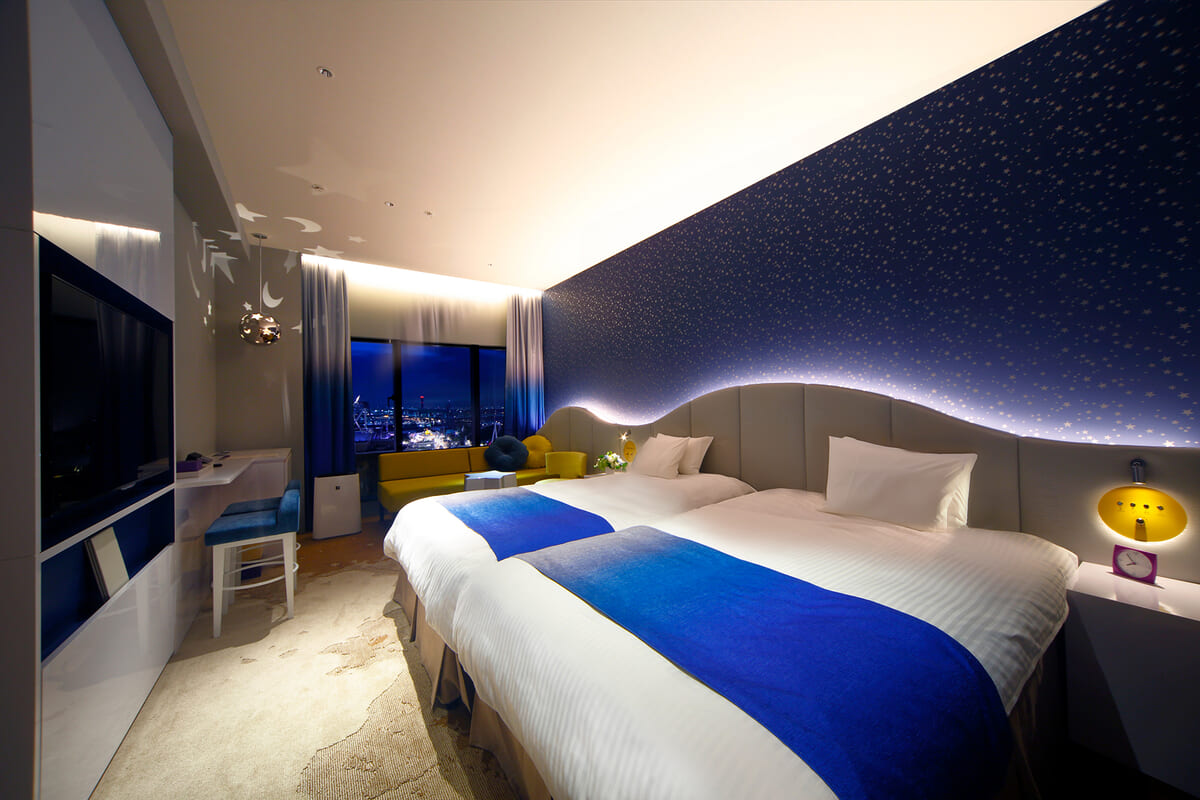 夜空に輝く星々をモチーフにデザインされた「スターリールーム」に、1人5,000円で宿泊できるプランも登場。