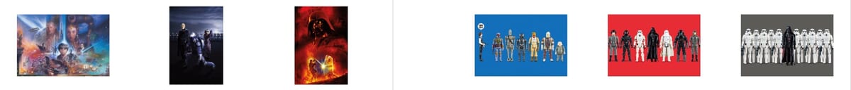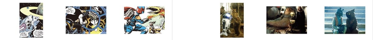 2023年4月27日(左3種)からのポストカードは「スター・ウォーズ サーガ」をコミック風で表現したアートです。