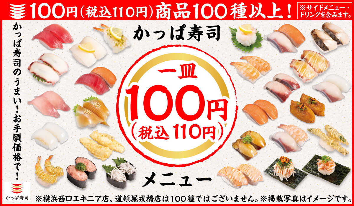 100円(税込110円)寿司が 92品に
